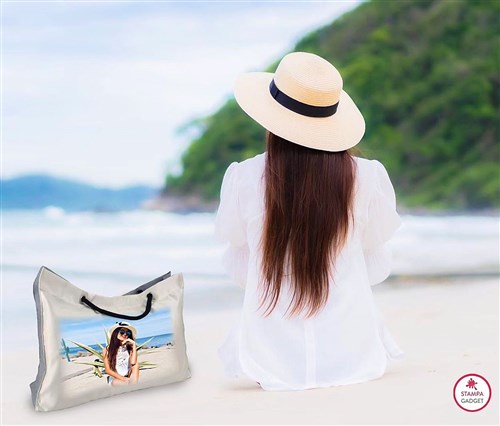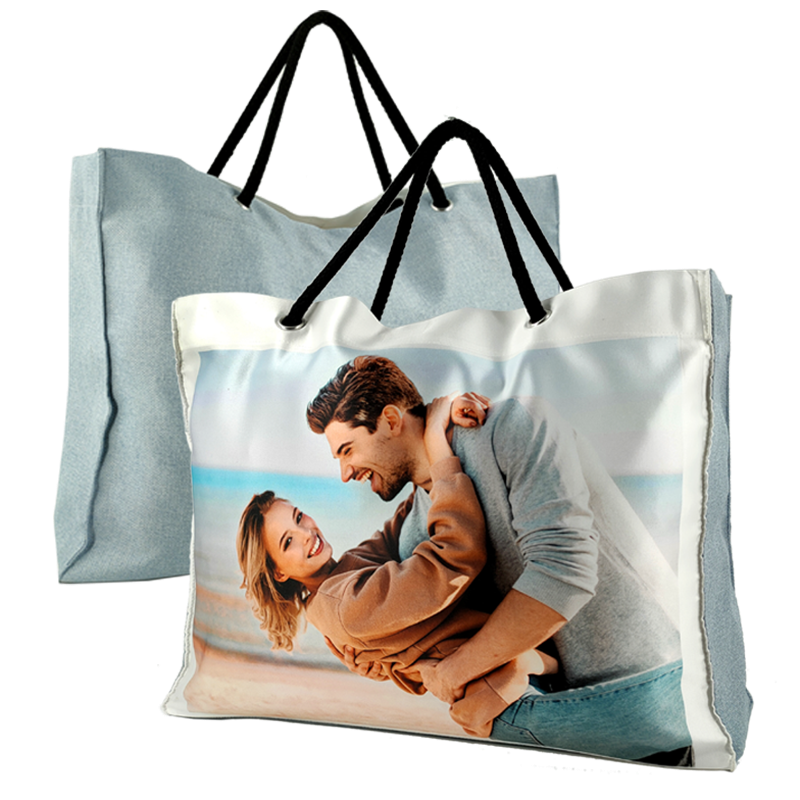 Borsa Shopper I manici in corda,oltre ad essere morbidi al tatto, sono robusti e abbastanza lunghi per indossare la borsa comodamete a spalla. Disponibile nel colore Azzurro, Nera , Rosa e Verde sul fronte della borsa è personalizzabile con le tue fotografie, con testi e con motivi grafici.