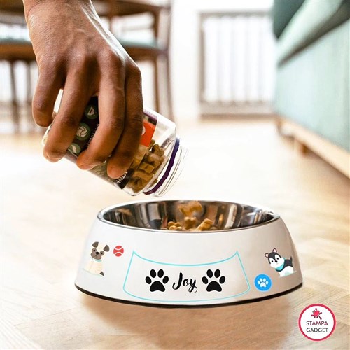 Hai un cane o un gatto oppure sei alla ricerca di un regalo perfetto per un amico che ama gli animali? stampagadget ha l’idea giusta per te. Realizza una Ciotola per cani e gatti personalizzabile con il nome scegliendo la grafica dal composer, o crearti tu la grafica personalizzata con foto scritte e clipart. Le ciotole sono realizzate in plastica bianca, si può avere anche un inserto in alluminio e sono personalizzabili su quasi tutta la superficie non solo con le tue immagini ma anche con effetti grafici e con frasi. Diametro 20 cm Altezza 6 cm Area di stampa 60 cm