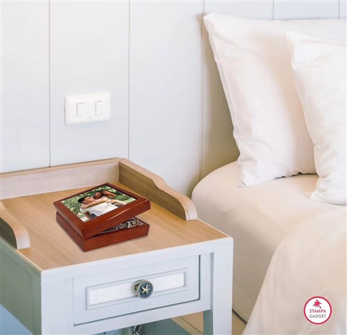 Realizza un raffinato portagioie in legno, con stampa su ceramica, personalizzabile con le tue foto preferite, grafiche e con testi stampati sulla superficie. L'interno di questo prodotto è foderato in velluto bianco e all’interno puoi conservare tutti i tuoi gioielliUna buona idea regalo per i tuoi gioielli!