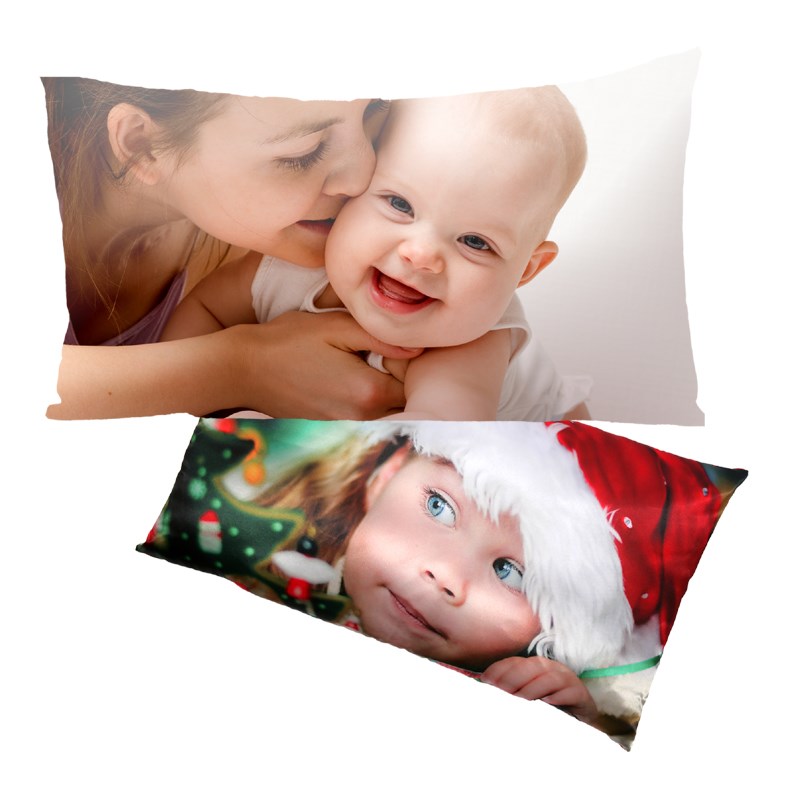 Cuscino personalizzato rettangolare realizzato in raso, con due stampe, una su ogni lato del cuscino, che rende più accogliente ogni divano.