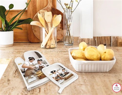 Il pratico guanto da forno, per rendere il tuo ambiente, in cucina ancora più coinvolgente e originale. I guanti da forno sono imbottiti e personalizzati con rifiniture colorate rosse; Puoi personalizzarli con le tue fotografie e immagini per rendere i tuoi pasti divertenti. Infine se desideri avere un prodotto più originale aggiungi le grafiche disponibili online e scrivi un testo. Personalizza la tua cucina una buona idea regalo Area di stampa :15 cm x 24 cm