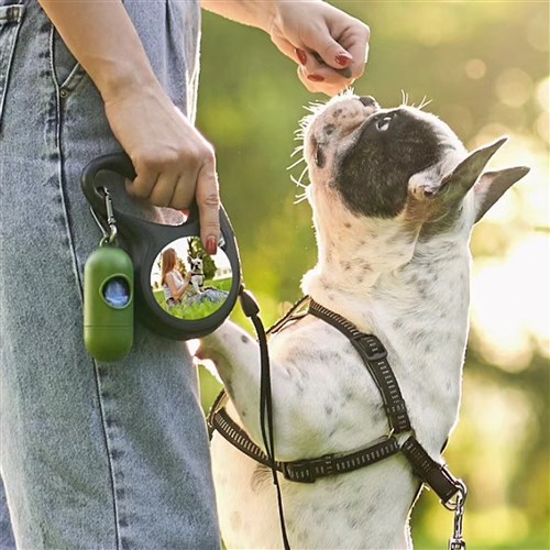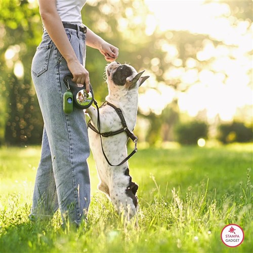 Guinzaglio avvolgibile, personalizzabile con foto e scritte su entrambi i lati. Corda della lunghezza di 3 metri che si arrotola e srotola in automatico, freno da attivare con pulsante. Il guinzaglio è un accessorio indispensabile durante le passeggiate col tuo amico di zampa. Il guinzaglio è anche un accessorio di moda, griffato, prezioso, per questo diamo la possibilità di personalizzarlo a vostro piacimento, per rendere unica ed eccezionale la passeggiata insieme al vostro amichetto a quattro zampe.