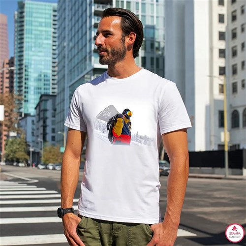 T-shirt full foto bianca, utilizzabile per l'uso quotidiano, lavoro, studio, shopping, incontri, feste, sport, club e giochi all'aperto;